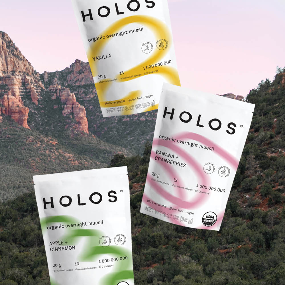 HOLOS overnight muesli is a creamy & crunchy blends of organic whole grains with 20g of plant proteins, seeds, probiotics, dried fruits, superfoods and spices.