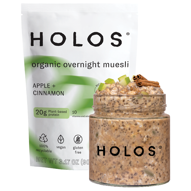 Rolled oats*, Sprouted brown rice protein powder*, Chia seeds*, Dehydrated apple pieces*, Pumpkin seeds*, Sunflower seeds*, Maple sugar*, Natural flavour*, Ground Ceylon cinnamon*, Himalayan pink salt, Guar gum*, Maca powder*, Bacterial culture (Bacillus coagulans GBI-30 6086)